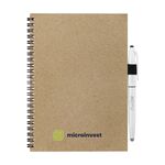 MOYU branded A5 erasable notebook made from stone paper. The sturdy cover is made from 440 grams of recycled kraft cardboard. This notebook includes a pen and cleaning cloth. Each stone paper page is sustainably produced, naturally tree-free and 100% recyclable. This notebook, with an elastic pen loop, is bound in a strong wire-o binding and has 18 pages lined paper. Take down notes with the accompanying, special MOYU pen. This pen contains the original Frixion ink. This special ink dries completely on stone paper and is easy to erase without leaving a trace. Slightly moisten the supplied MOYU cloth with some water and erase the ink. This way, pages remain empty for new ideas and to-do lists. You can write on rock paper 500 times on average. This notebook will last you for years. Stone paper is made from 80% limestone and 20% clean plastic. It is naturally tree free, and no water or chemicals are required to make it. The production of stone paper is therefore more economical and produces 67% less CO2 than in the production of pulp paper. In addition, stone paper can be recycled endlessly, without having to add new raw materials.
