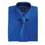 A short sleeve work shirt for men with a stiffened formal cut collar that can accommodate a tie. The main body has a useful left breast pocket.